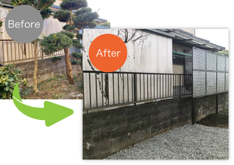 無料見積時に私たちの意見をしっかりと聞いてくれ、プロの目線で色々な提案をして頂きました。作業の事前説明もとても丁寧で、凄くわかりやすかったです。今回は庭木の伐採だけではなく造園工事もお願いし、庭石なども全て撤去して頂きました。想像通りの出来栄えにとても満足致しております。良い工事を安くして頂き、本当にありがとうございました!