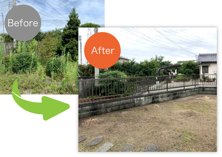 実家の庭が荒れてしまい、自分達では手に負える状況ではなかったので伐採コーディネーターさんに木の伐採と草刈りもお願いしました。作業完了後の庭を見てびっくり、実家の庭がこんなに綺麗になるとは思いませんでした!次は自宅の庭の手入れをお願いしようと思います!